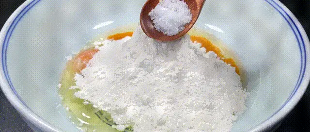 隨後少量多次地加入清水,調整至酸奶般濃稠且無麵疙瘩的狀態。最後加入少許食用油,攪拌均勻,讓油與麵糊充分融合。這一步能讓炸出的蘑菇更酥脆。