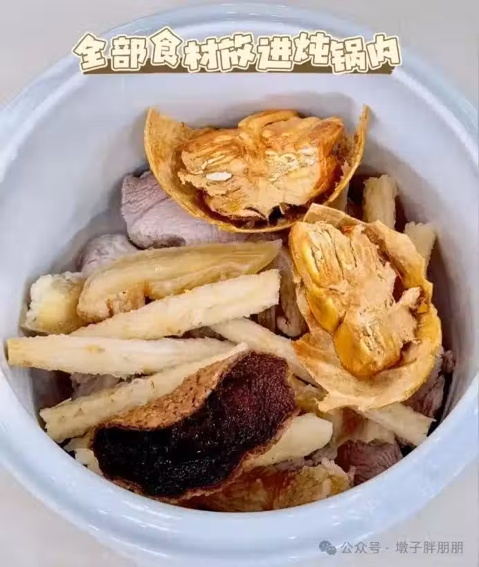 - 30分鐘後,加入羅漢果、沙參、玉竹、紅棗、枸杞,繼續燉煮30分鐘。