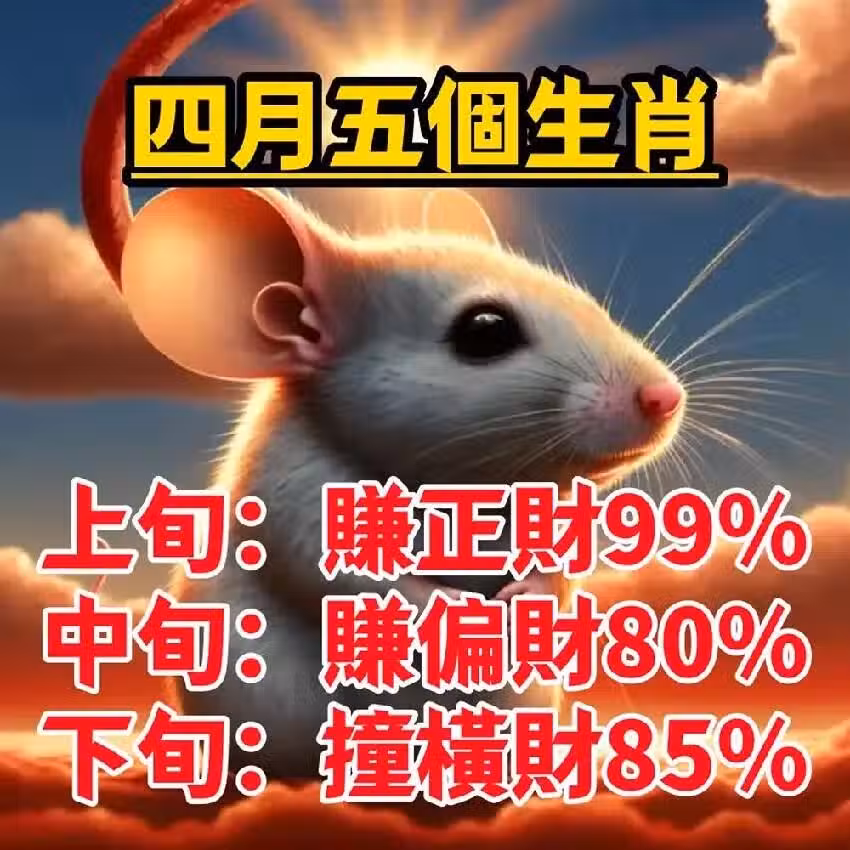 4月正財穩,偏財旺,橫財遍地的五大生肖!