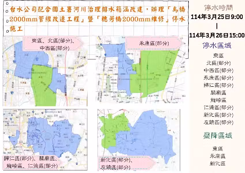 3.新化區:唪口裡、武安里、太平里、崙頂里、全興里、豐榮里、北勢里、護國里、協興里。