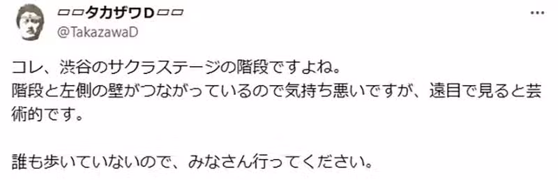 「澀谷Sakura Stage的樓梯要走下去真的很可怕。」