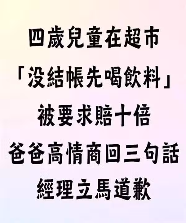 4歲童超市偷喝飲料被索賠10倍?爸爸高情商3句話,讓經理當場道歉