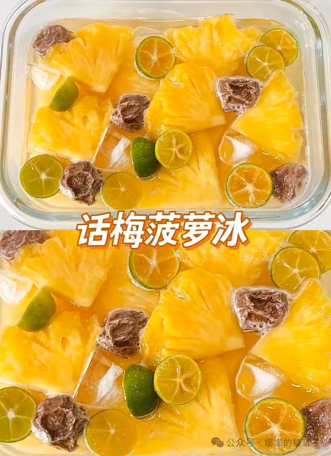 2.加入菠蘿片,加入小青檸、話梅。