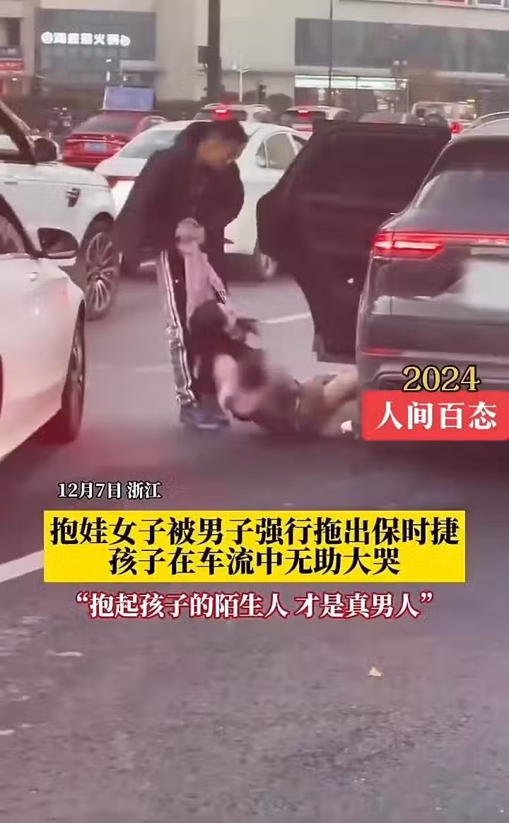 視訊中的情景令人不寒而慄,一名抱著孩子的女子被男子強行拖出保時捷,而最讓人心碎的部分是,孩子在車流中無助地大哭,整個情況十分危險。