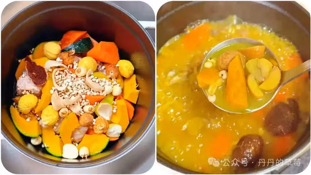 排骨(或者瘦肉)、南瓜、板栗、胡蘿蔔、無花果、蓮子、百合、炒薏米、陳皮
