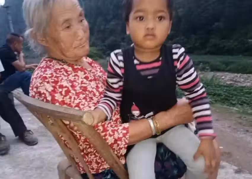 在老家,87歲的母親在見到這個混血小孫女後非常開心,果然還是隔輩親呀。
