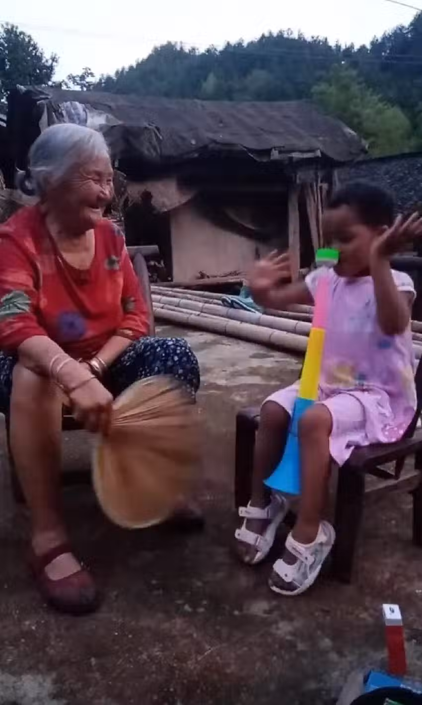 2024年7月5日,王維林在抖音上更新了一條視訊,佳美和奶奶坐在一起納涼。