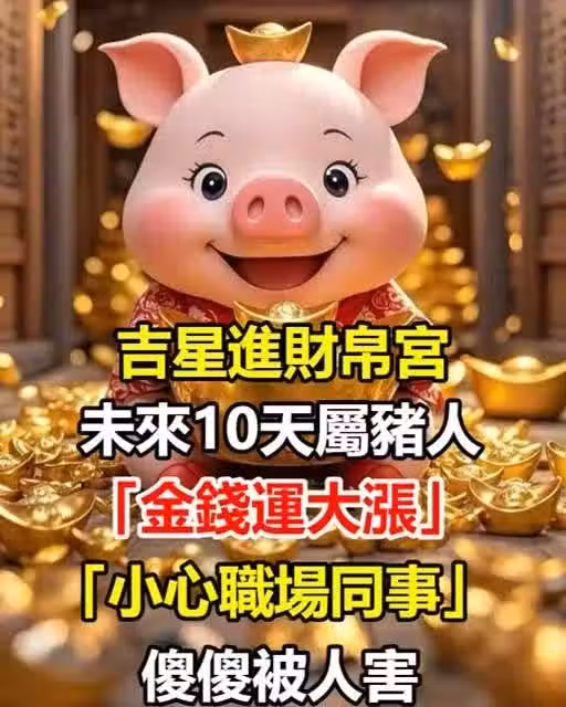 吉星進財帛宮!未來10天屬豬人「金錢運大漲」「小心職場同事」傻傻被人害。