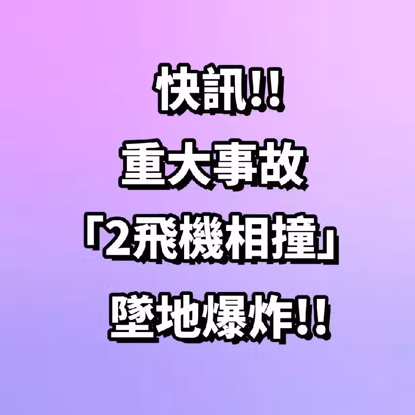 快訊/重大事故!「2飛機相撞」墜地爆炸 傷亡情況曝