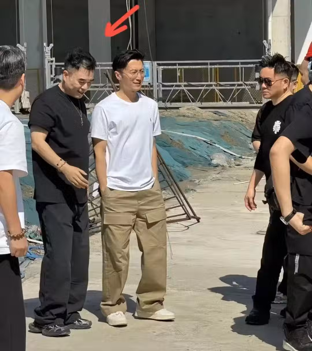 謝霆鋒深圳工地看樓戴紅帽,身高被疑似才168,網紅薇婭老公隨行