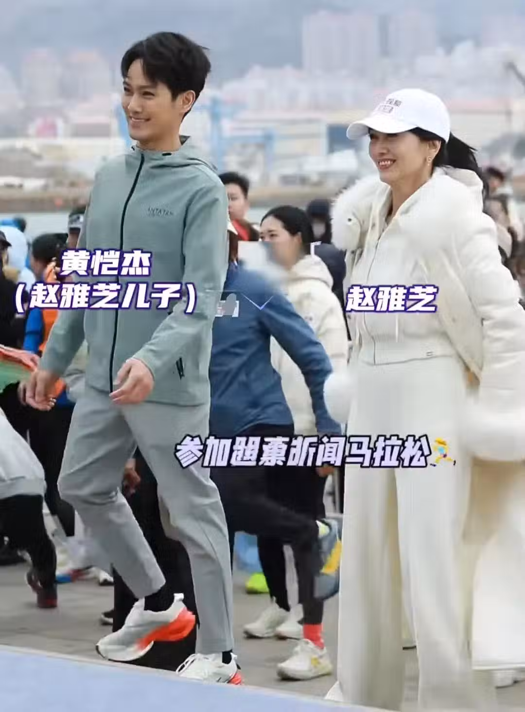 72歲趙雅芝在山東,和兒子跑馬拉松,黃愷傑顏值高,母子長得好像