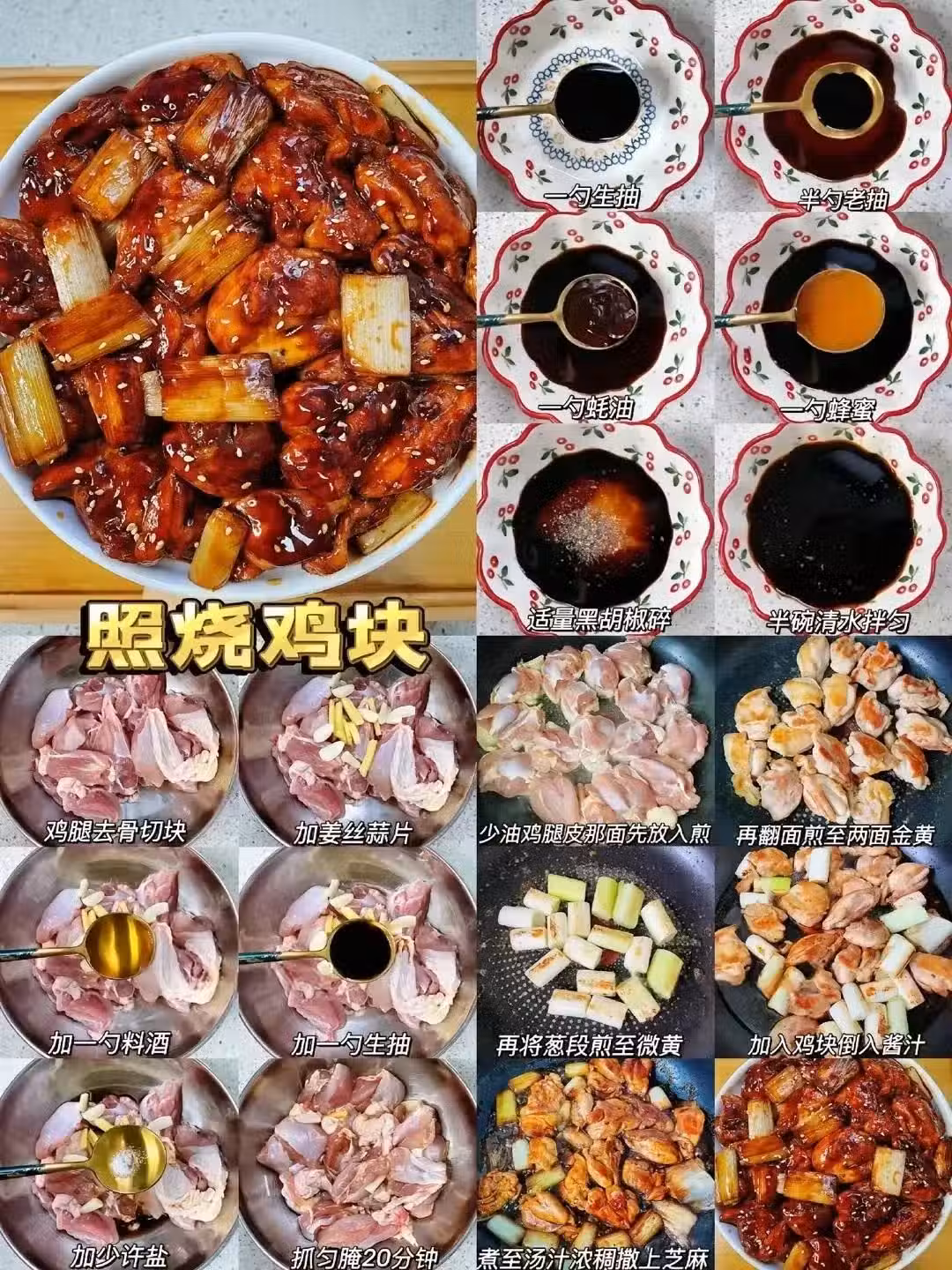 日劇女主便當盒の靈魂。雞腿去骨煎至金黃,倒照燒汁(生抽+蜂蜜+料酒)收汁,切塊擺盤時記得學動漫里喊"いただきます"!