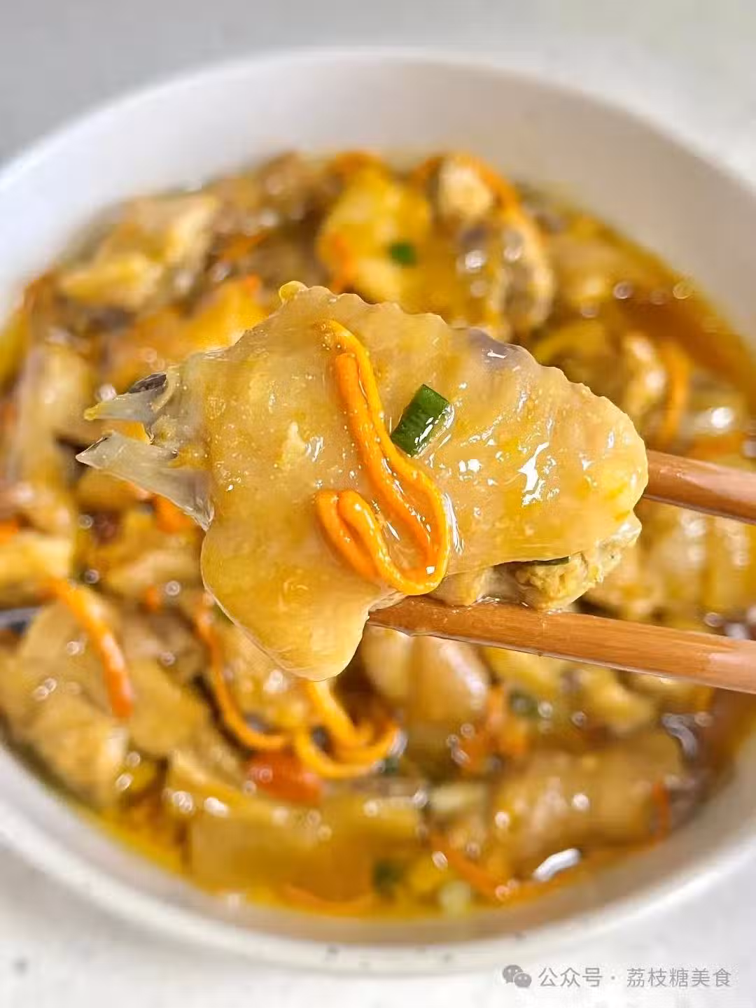 鮮掉眉毛的蟲草花蒸雞,雞肉嫩滑多汁,蟲草花脆嫩爽口,低脂高蛋白,胺基酸豐富,不加一滴水,原汁原味。