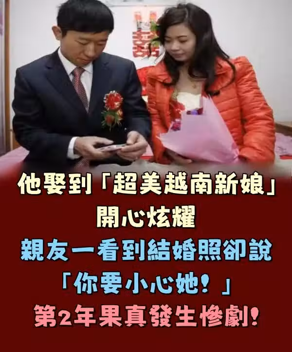 婚禮當天,仲介果然替他帶來一位很漂亮的越南老婆,當男子看到新娘穿上禮服的時候,激動地立刻傳照片向自己遠在故鄉的親友們炫耀!只是沒想到後來他的朋友卻說...