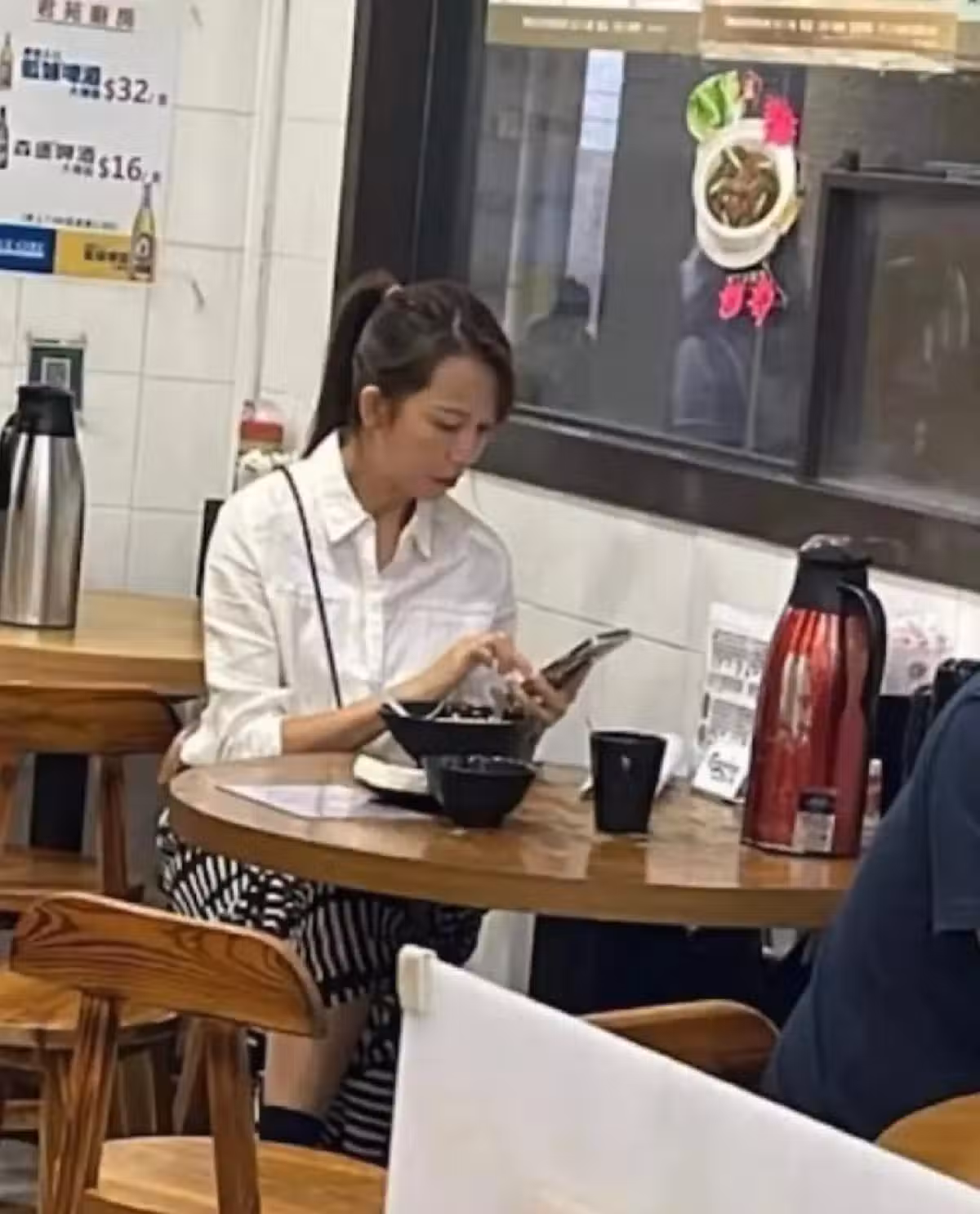51歲蔡少芬在香港,去了一家麵包店,打扮一言難盡,好像家庭主婦