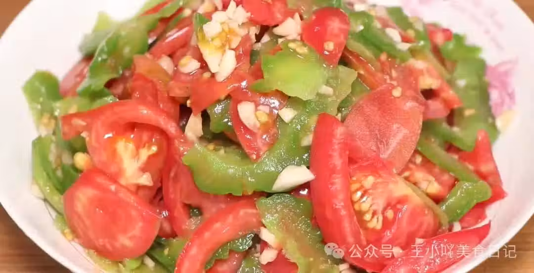這道菜色彩鮮艷,紅綠相間,看著就讓人食慾大增。嘗一口,苦瓜的爽脆和西紅柿的酸甜交織在一起,再加上蒜香的提味,簡直讓人回味無窮。