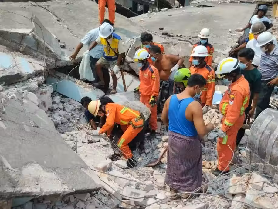 周五的地震發生後,緬甸警消人員在曼德勒徹夜從倒塌的大樓中搜求生還者,整座城市的民眾幾乎都外出,街頭擠滿了人,沒有人敢留在屋內。