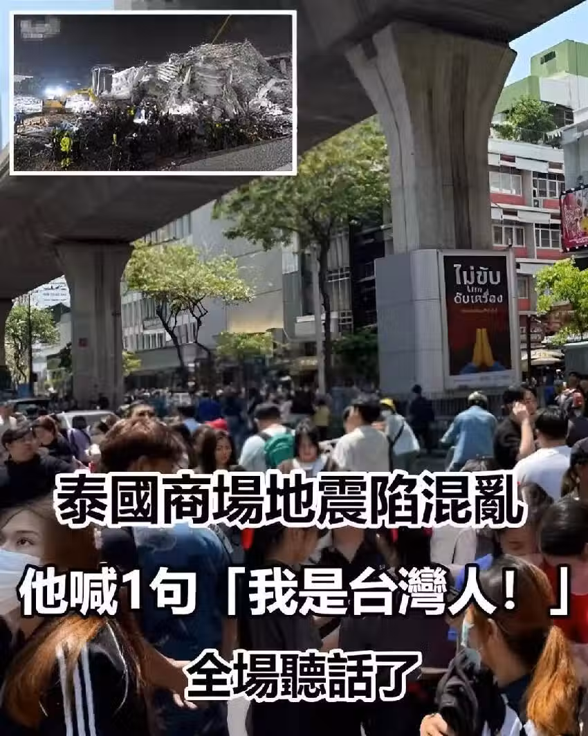 而此次地震當下,泰國大批人逃亡,吵雜之中卻出現一句「我們是台灣人!」當下瞬間安靜,乖乖聽話找掩護。