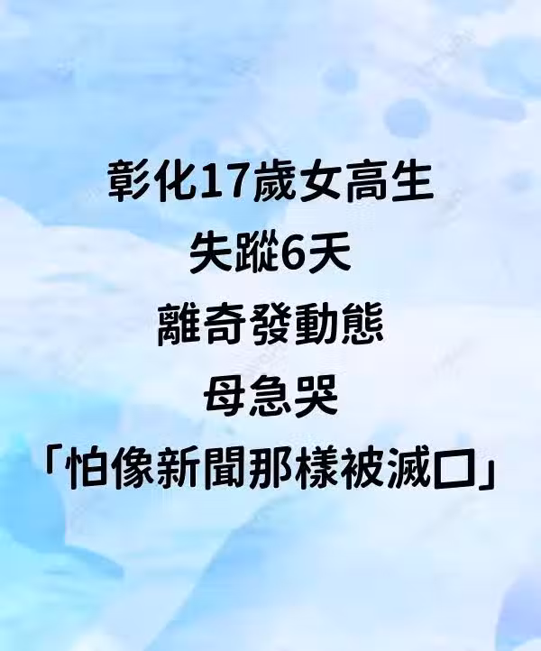 快訊/彰化17歲女高生失蹤6天!離奇發動態 母急哭「怕像新聞那樣被滅口」