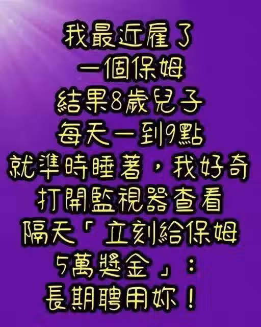 我最近雇了一個保姆,結果8歲兒子每天一到9點就準時睡著,我好奇打開監視器查看,隔天「立刻給保姆5萬獎金」:長期聘用你