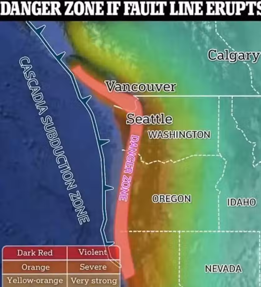 這條斷層上一次發生大地震還是在1857年,到現在已經超過150年沒有釋放過能量了。 專家預測,未來30年內,洛杉磯發生7.5級地震的幾率高達36%。 一旦發生地震,可能會出現1800人死亡、50000人受傷的慘烈場景。 另一條是卡斯卡迪亞斷層,長達1000公里。 它上一次 「大發雷霆」 是在1700年,當時引發了15米高的海嘯,威力大到直接橫跨太平洋衝擊了日本。 這條斷層每隔300-500年就會釋放一次巨大能量,如今已經進入活躍期,隨時可能爆發9.0級以上的 「超級大地震」。 一旦爆發,整個太平洋沿岸都可能被奪命海嘯淹沒。