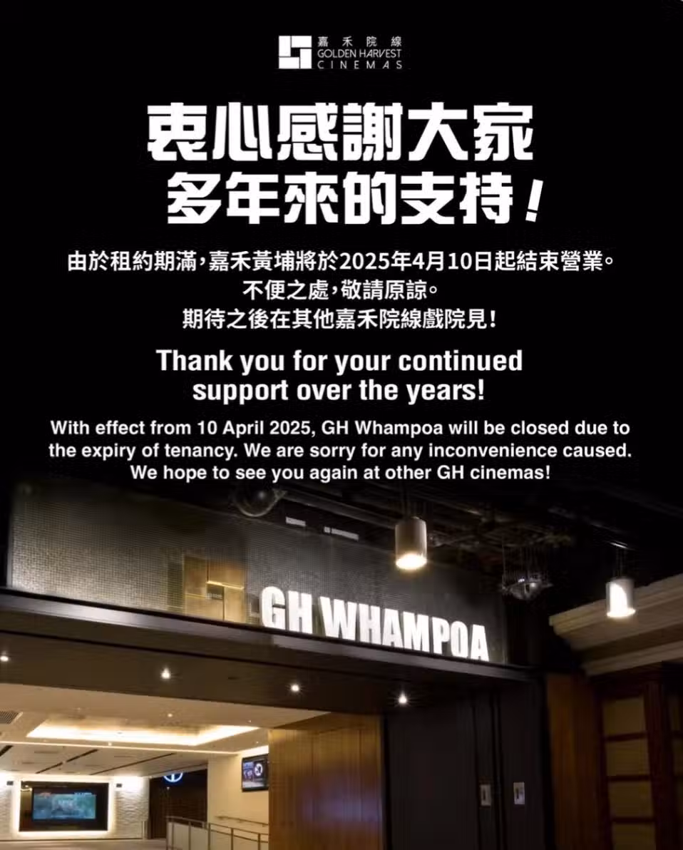 結業潮|嘉禾黃埔4月10日結業,明起推小食優惠最後一夜與戲迷重溫四部經典電影