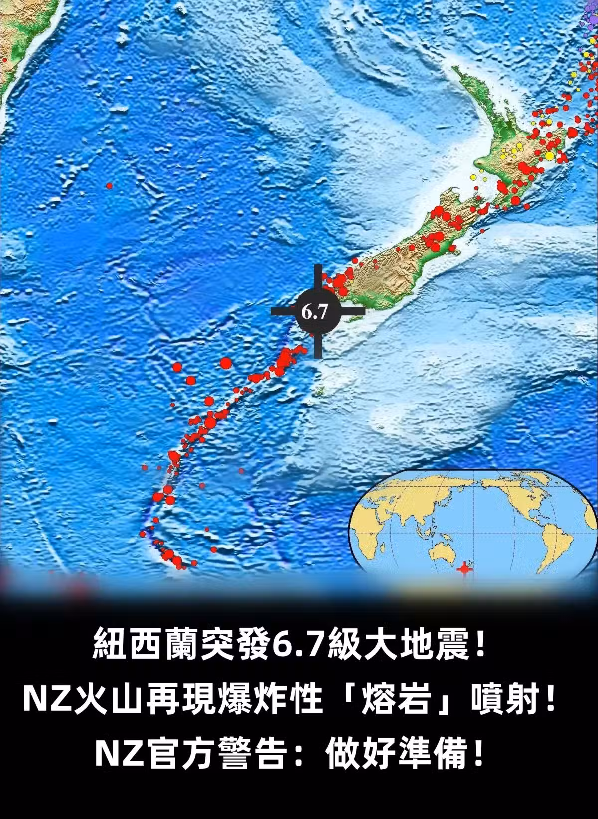 紐西蘭突發6.7級大地震! NZ火山再現爆炸性「熔岩」噴射! NZ官方警告:做好準備!