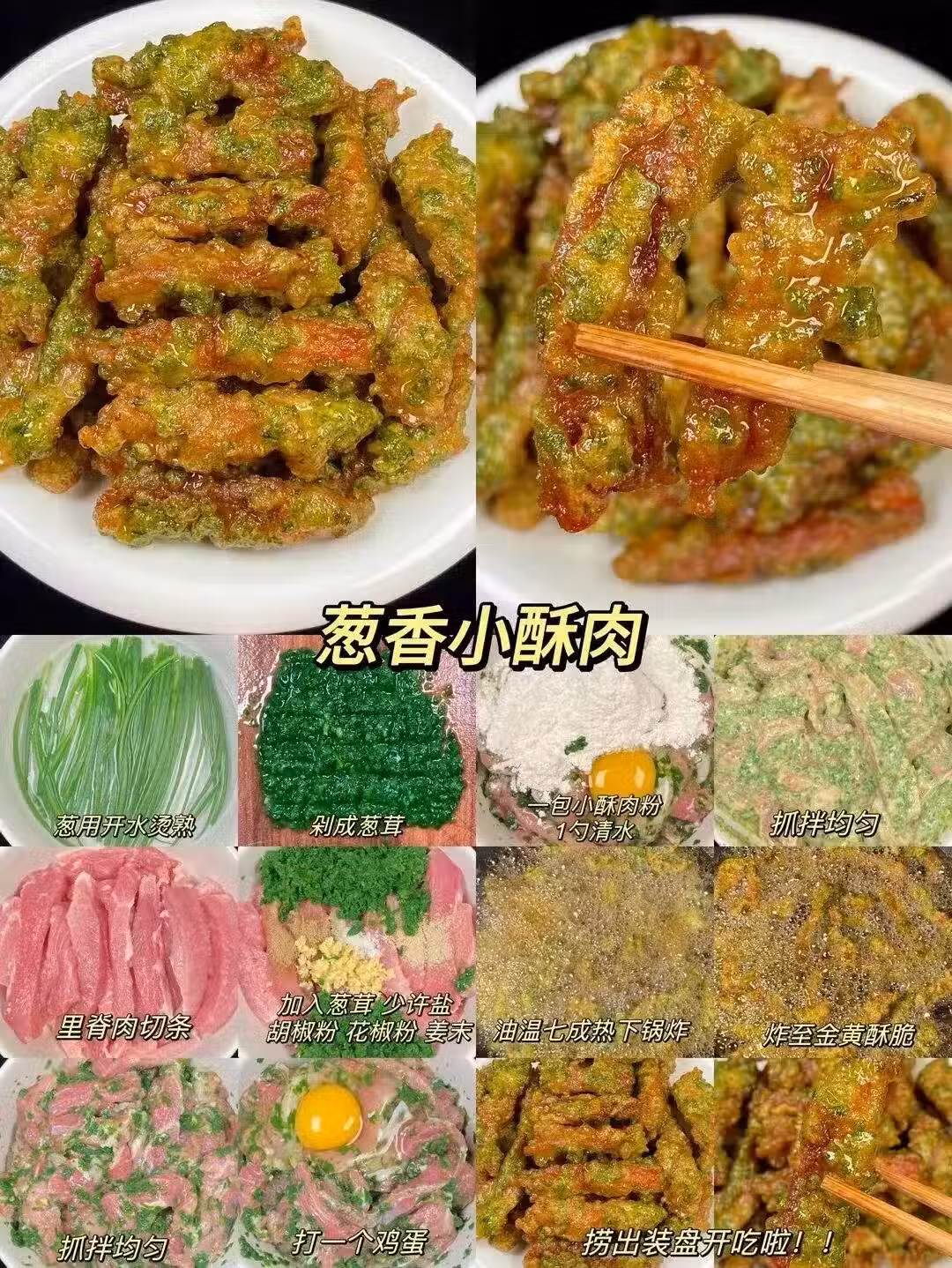 蔥香小酥肉:火鍋店的臥底選手,四川小酥肉,火鍋店的臥底MVP! 裡脊肉裹花椒麵麵糊,炸得酥香麻爽,直接吃能下三碗飯,丟進火鍋涮5秒——嚯!這是什麼天選CP!