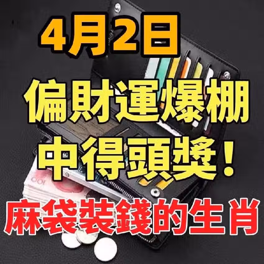 4月2日偏財運爆棚,中得頭獎!用麻袋裝錢的生肖