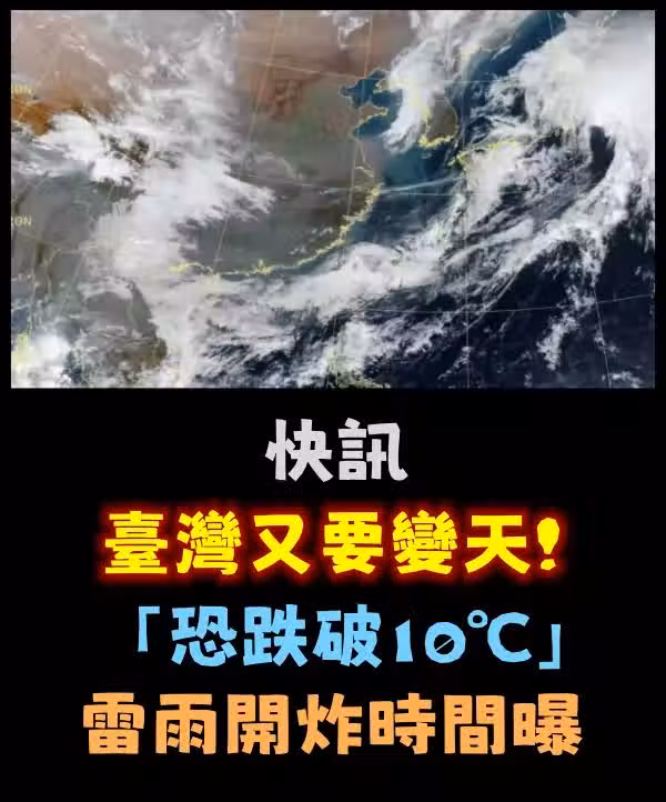 快訊/台灣又要變天!「恐跌破10℃」雷雨開炸時間曝