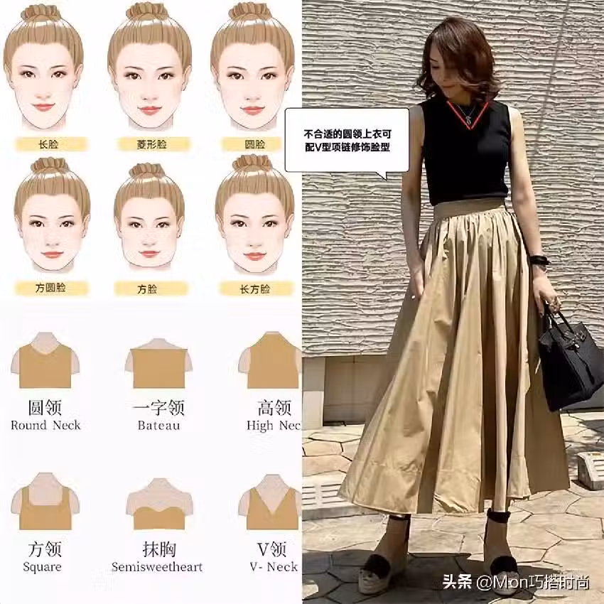 ①修飾臉型得靠選對領型,或疊加項鍊修飾