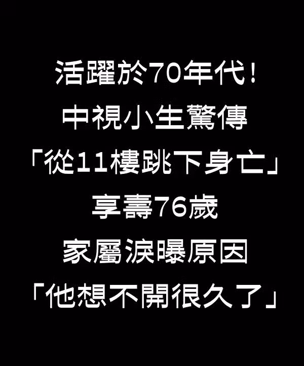 活躍於70年代!中視小生驚傳「從11樓跳下身亡」享壽76歲 家屬淚曝原因「他想不開很久了...」