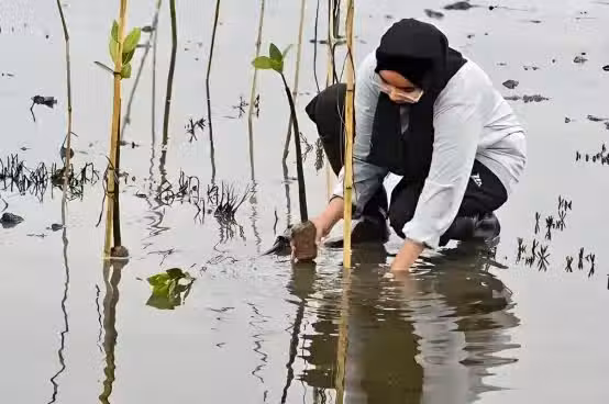 #印尼人民在淤泥中種下紅樹林幼苗,這或許也是種下希望