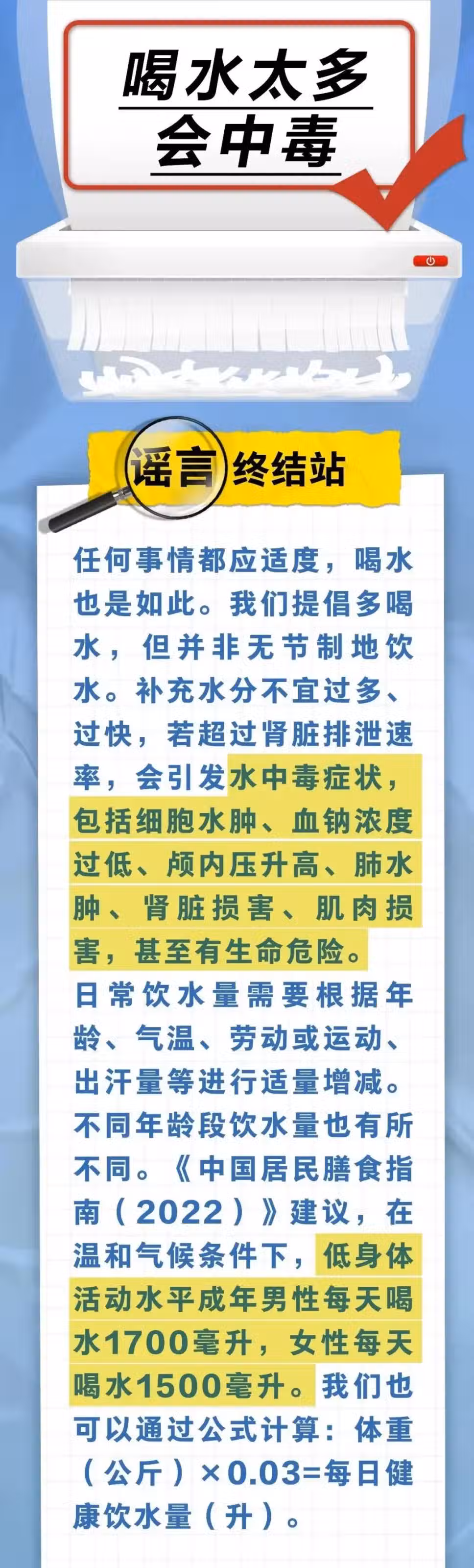 生活中我們每天會喝水,那麼每天喝多少水才健康?喝水太多會中毒嗎?一圖了解↓
