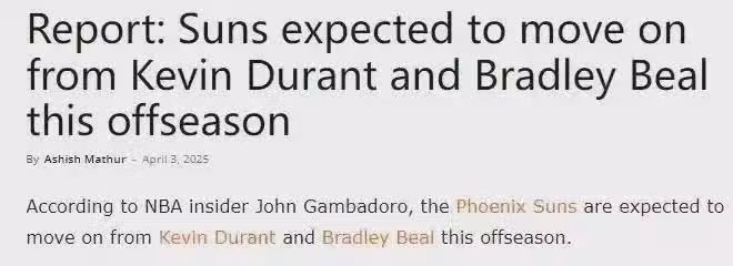 美媒:預計太陽今夏休賽期交易杜蘭特和比爾。