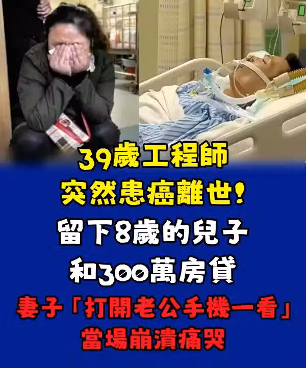 39歲工程師突然患癌離世!留下8歲的兒子和300萬房貸 妻子「打開老公手機一看」當場崩潰痛哭