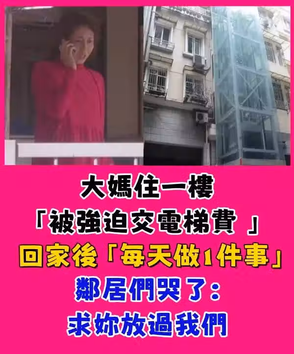 大媽住一樓「被強迫交電梯費 」 回家後「每天做1件事」鄰居們哭了:求你放過我們吧!