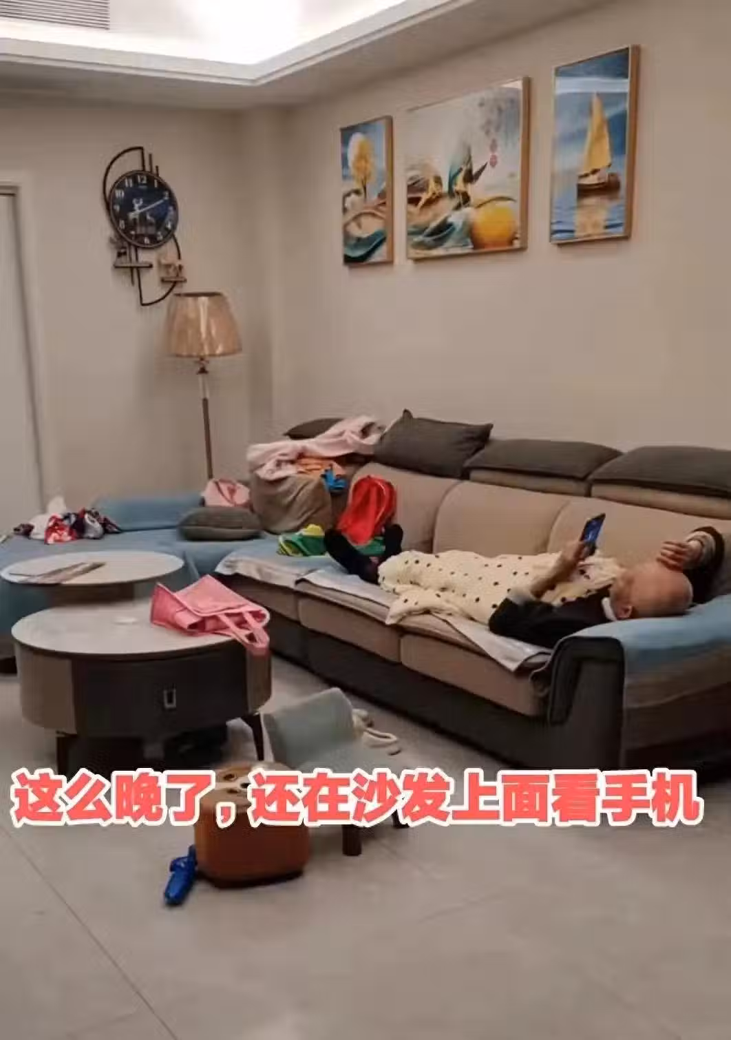 廣東女子一家與公婆同住,公公躺客廳沙發上,女子:看見都覺煩