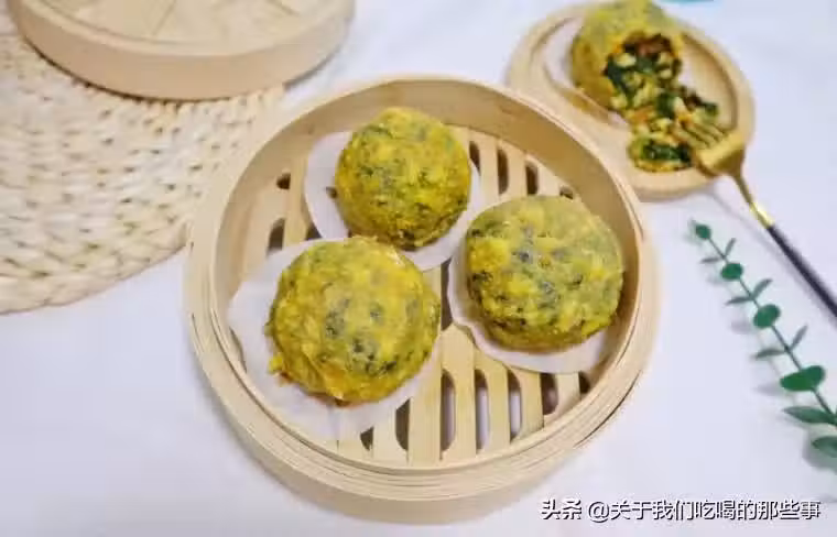 3、加入一勺玉米面,再次攪勻,用手把菜餡捏成合適大小的菜團,放進全麥粉里滾一圈,沾點水再裹一層,裹上厚厚的全麥粉。4、蒸籠里舖上防粘的油紙,放入弄好的菜糰子,蒸鍋加水大火燒開,蒸8~10分鐘,菜糰子就蒸好了,皮薄餡大,非常好吃,蛋白質、碳水、粗纖維都有了,飽腹還不長肉。