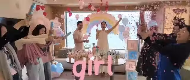 在揭曉孩子性別的重要時刻,王君馨讓老公做主,其老公扎破了粉色的氣球,原來王君馨懷的是一個女孩兒。