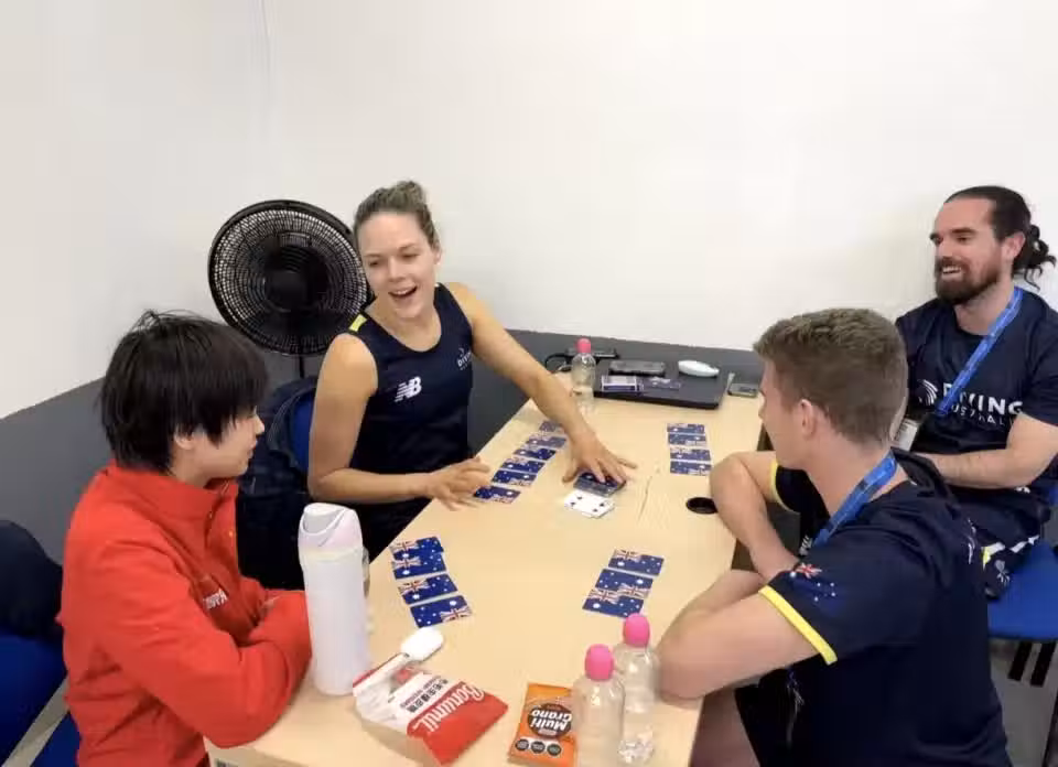 值得一提的是,全紅嬋還與澳大利亞跳水隊的三名成員一起打撲克,對方全程說著英語,不知這一次全妹聽懂了嗎?