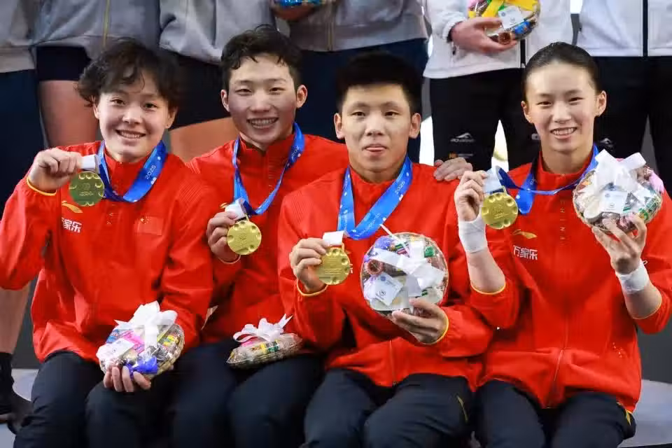 雙人項目和混合團體項目爭奪,中國隊拿到4金1銀,其中男雙3米板丟金。2024年巴黎奧運會上,當時王宗源/龍道一組合就贏得非常驚險,以微弱優勢擊敗墨西哥組合塞拉亞/奧爾韋拉。