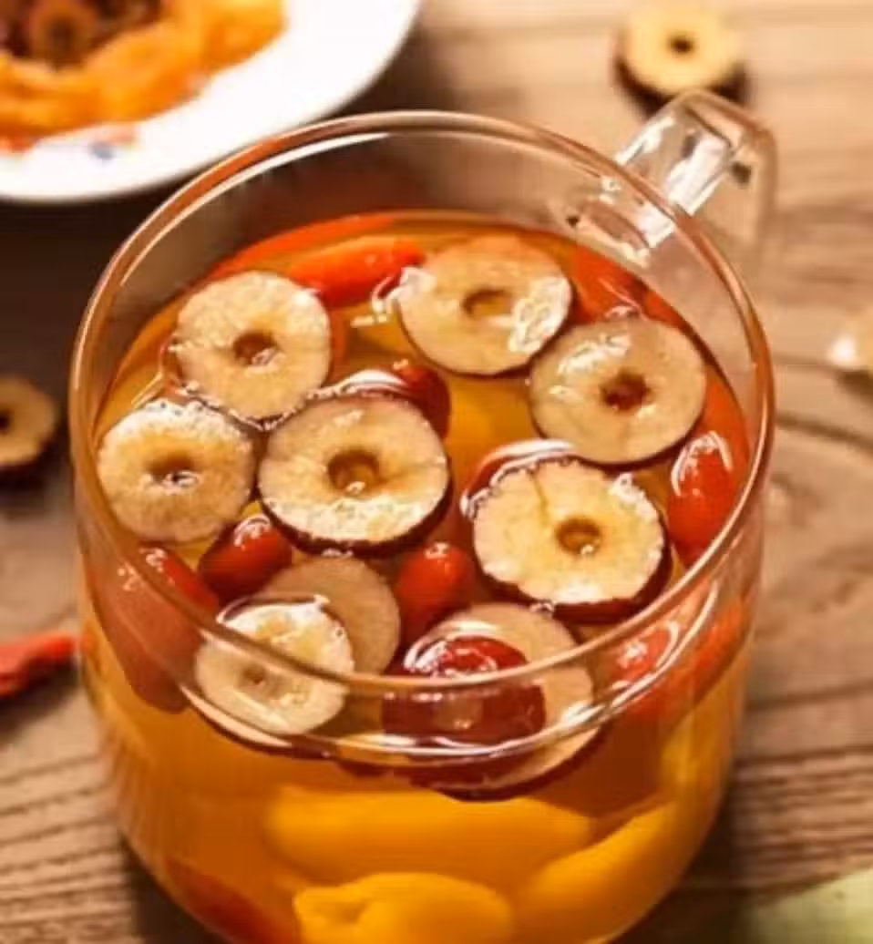 功效:紅棗有補中益氣、養血安神的功效,枸杞可以滋補肝腎,而桂圓補益心脾,它們的搭配可以補養肝血,改善面色萎黃、頭暈乏力等肝血不足的表現。