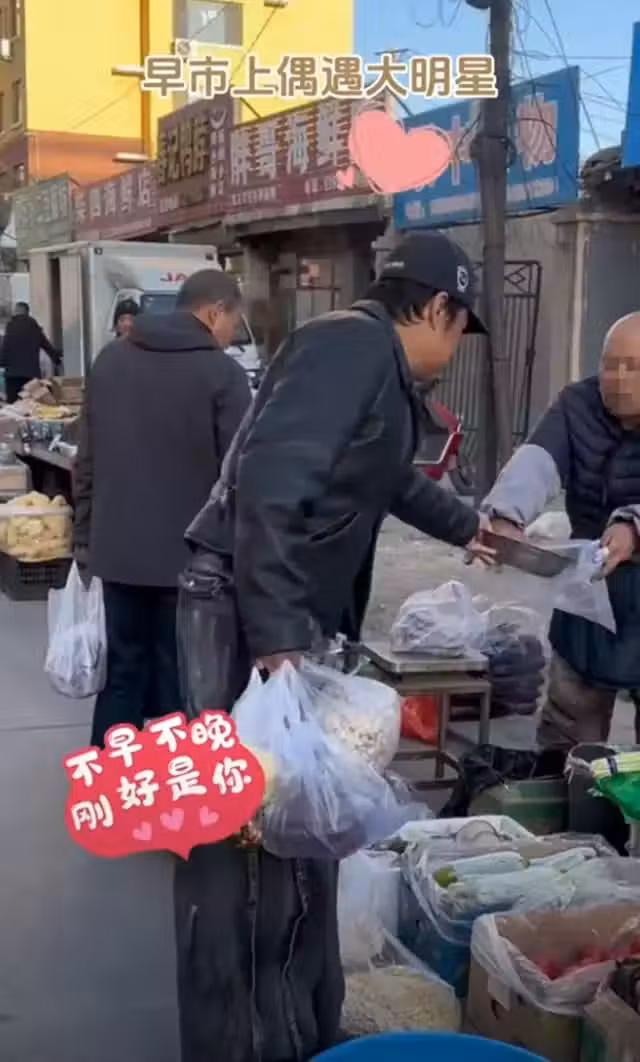 正在一家蔬菜攤前買核桃的馬景濤,對於認出自己的粉絲一點明星架子都沒有,手上端著一碗核桃的他還熱情招呼粉絲們來嘗一嘗,十分接地氣。