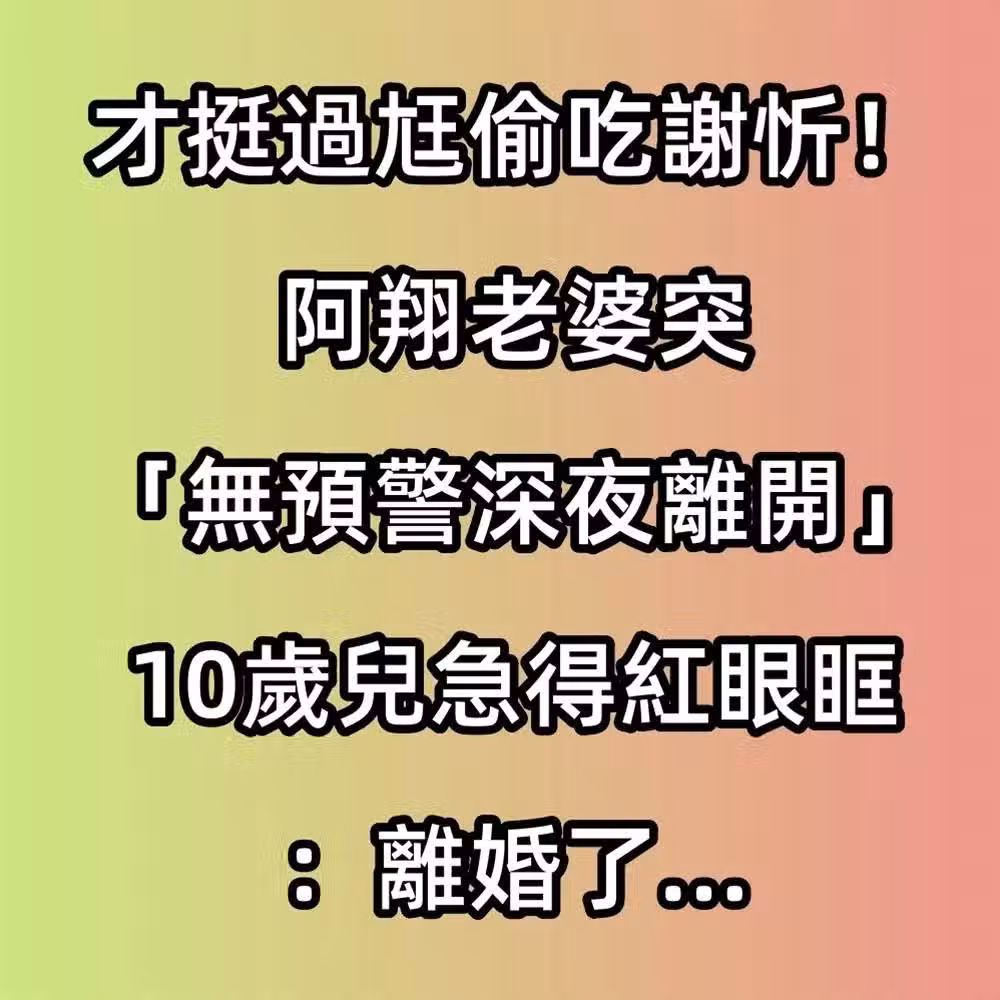 才挺過謝忻不倫戀!阿翔老婆「無預警深夜離開」 10歲兒急得紅眼眶:離婚了