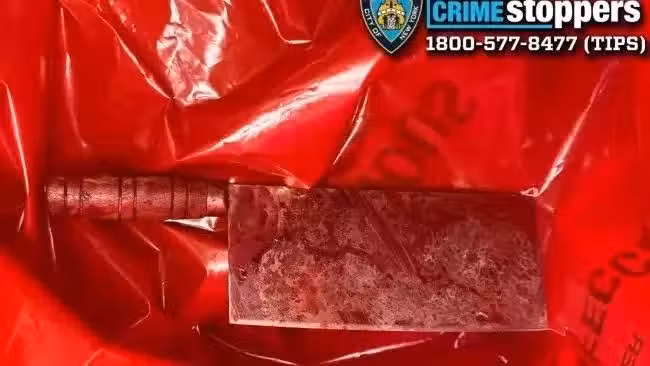 警方在現場收繳了用於行凶的菜刀和廚房刀具,畫面令人不忍直視。