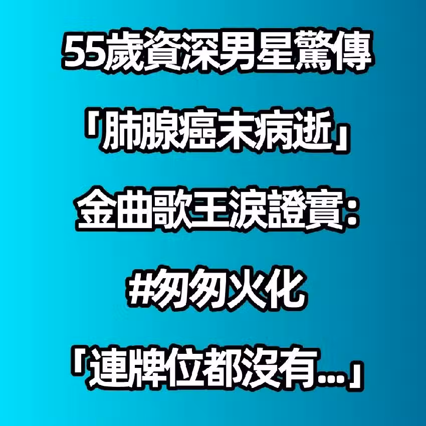 55歲資深男星驚傳「肺腺癌末病逝」!金曲歌王淚證實:「匆匆火化連牌位都沒有............」