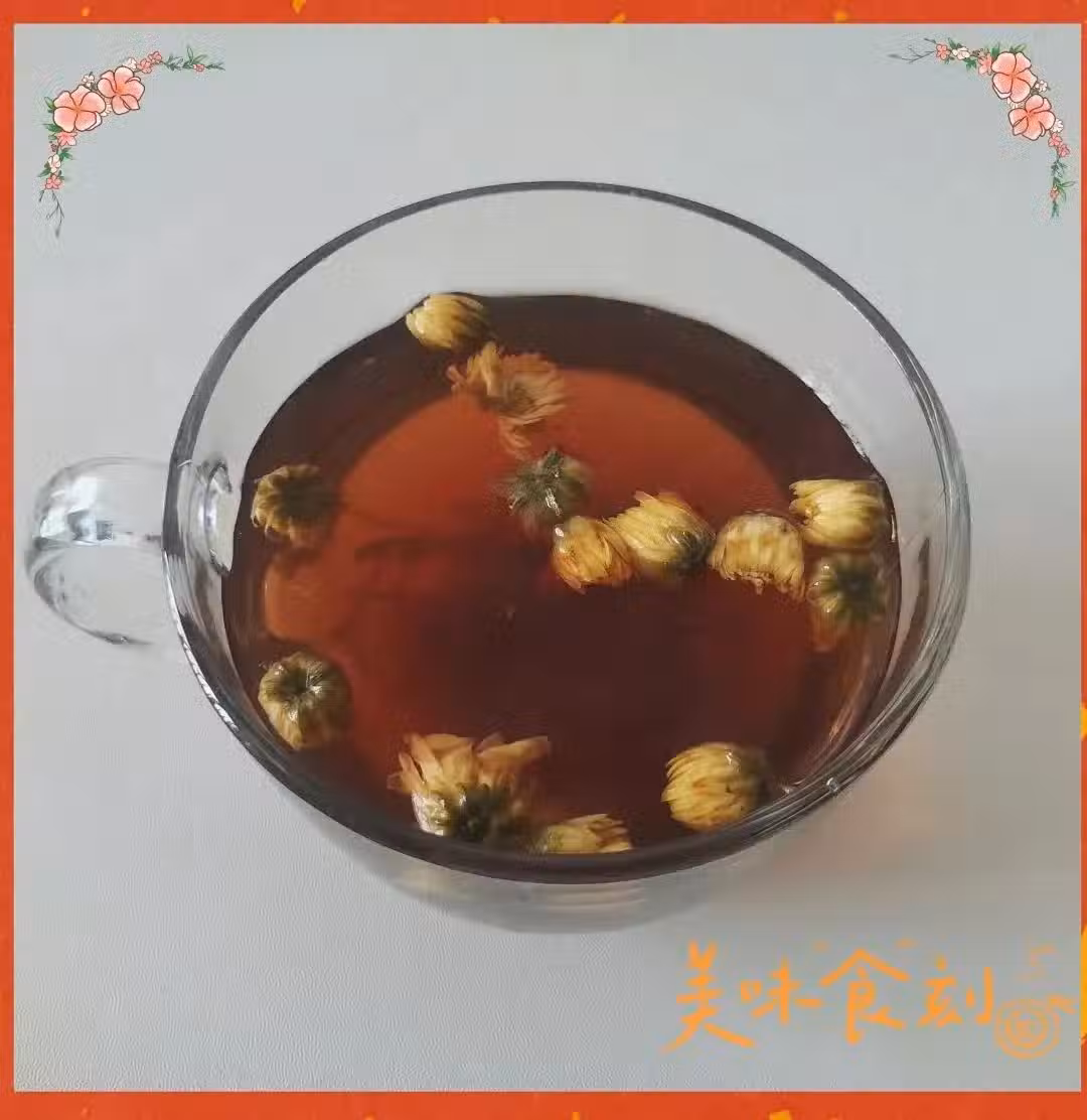 4. 豆湯晾至80℃時投入菊花和金銀花,加蓋燜泡6分鐘