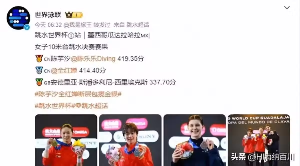 這場決賽是咱們的中國名將陳芋汐和全紅嬋,那簡直是斷層領先,把其他國家的選手遠遠甩在了後面。陳芋汐以四百一十九點三五分的成績摘得桂冠,全紅嬋也不甘示弱,四百一十四點四零分拿下銀牌,英國選手只能以三百三十七點七零分屈居第三。你看這分數,陳芋汐和全紅嬋都超過了四百分,這實力不是一般的強,簡直是跳水界的「雙驕」啊!