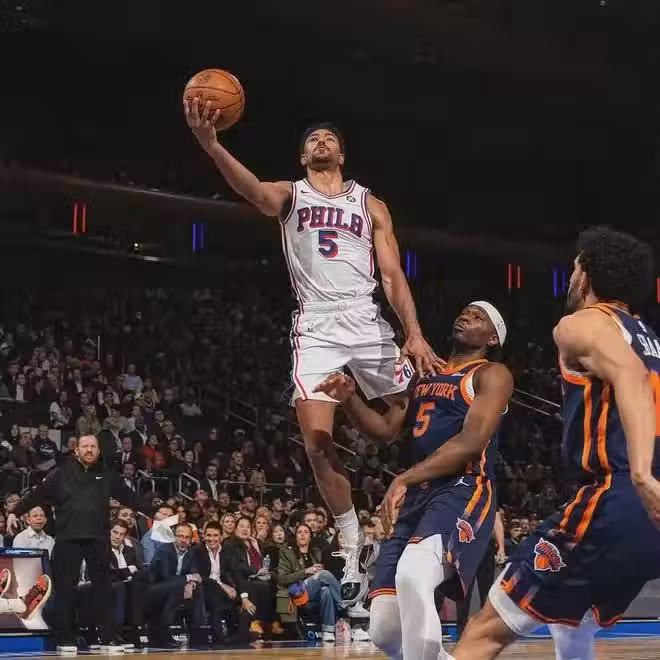 今年2月5日,獨行俠把格萊姆斯和1個次輪簽送至76人,2換1得到凱萊布-馬丁。格萊姆斯在76人打了26場,其中23場首發。場均出戰33.8分鐘,得到22.6分4.9籃板4.5助攻1.5搶斷2.8失誤,三項命中率:48.7%,39.3%,74.8%。